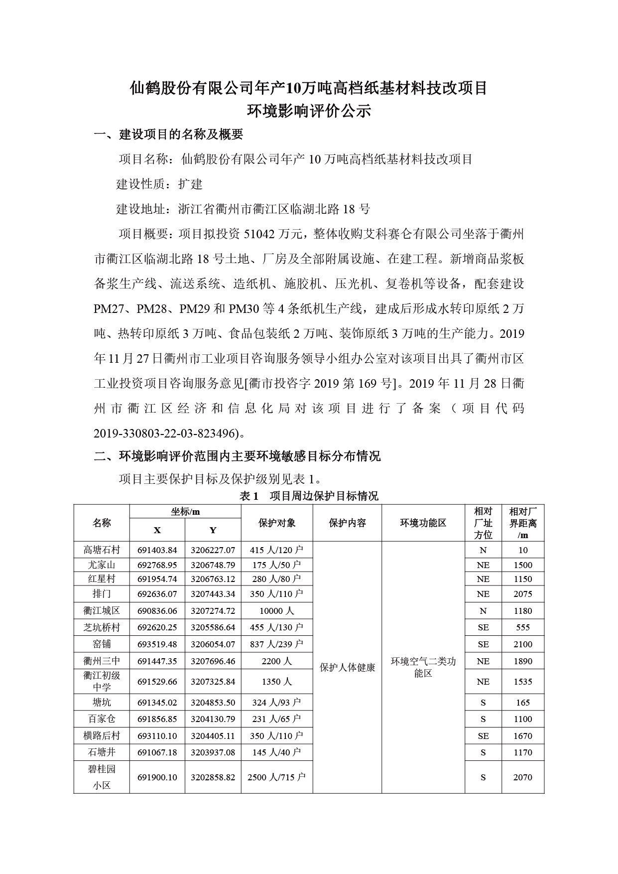 仙鶴股份有限公司年產10萬噸高檔紙基材料技改項目公參